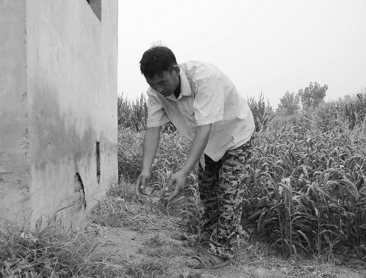 好心村民李贵生回忆在田地机井屋旁捡到孩子的场景。