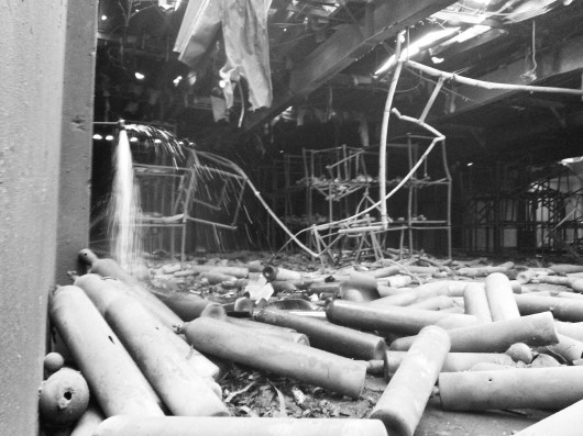 8月24日,美军位于日本神奈川县相模原市的军事基地发生爆炸后,现场一处破损的建筑内景。       新华/美联
