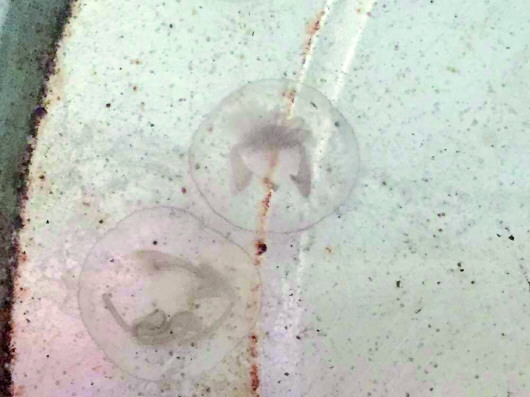 ◤池塘中发现的水母。 本报记者 郑帅 摄
