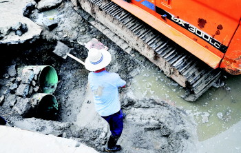24日,莱山区市政公用处组织施工人员对轸大路与长安路桥南北两侧污水管网进行施工改造。据悉,此处的污水对逛荡河水质造成严重污染,因此莱山区城管局对河道进行清淤,并对河道进行了硬化。改造完成后,将对改善逛荡河水质、美化城市环境起到重要作用。