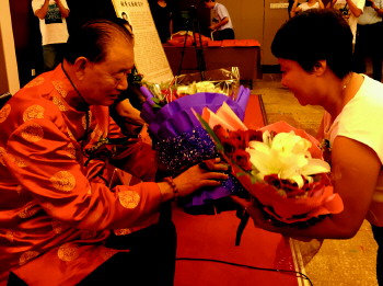 23日下午3点,在众多名中医的见证下,身着喜庆唐装的张奇文颁发收徒贴,弟子们齐行拜师礼并宣读入门弟子誓言,自此正式结为师徒。