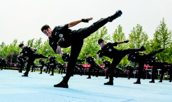 8月24日,德州公安部门进行反恐处突拉动演练,来自各县市区的10多支队伍,100多台装备车辆,1000余人集结在大剧院附近的广场上,实战对打,场面十分壮观。 本报记者 马志勇 摄