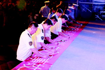 23日,胶州市交警大队在三里河广场开展以“对生命安全负责、争做文明好市民、宏扬尚德胶州,向交通事故宣战、争当中国好司机、共建文明城市”为主题的万人签名宣传活动,呼吁增强文明交通意识,在全社会形成“文明交通,从我做起”的浓厚氛围。 本报记者 刘震 本报通讯员 马迪 摄影报道