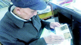 ◤殷树山时常拿出战友的照片缅怀。 记者 冯琳 摄