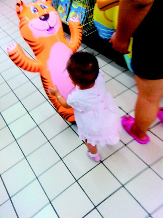 时间:2015年8月19日 自述:在超市看到,一个一两岁的小孩子把充气老虎抱放在地上,并用小手拍打着。真有点“初生牛犊不怕虎”的气概啊! 点评:如此被虐,求老虎此刻的心理阴影面积。