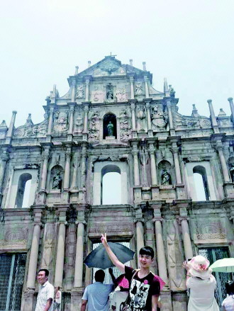 在澳门,团员先是来到金莲花广场,随后来到最有代表性的大三巴牌坊,这个建筑糅合了欧洲文艺复兴时期与东方建筑的风格而成,体现出东西方艺术的交融。“在课本上学过,但这是第一次见到实物,”小团员丛各着实被震撼到了。