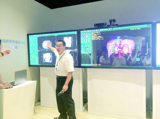 高川对海信CAS计算机手术辅助系统进行讲解。 刘帅 摄
