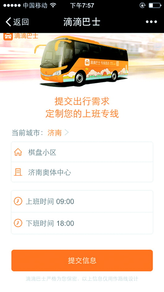 滴滴巴士开始在济定制路线 山东10城市率先享受定制服务