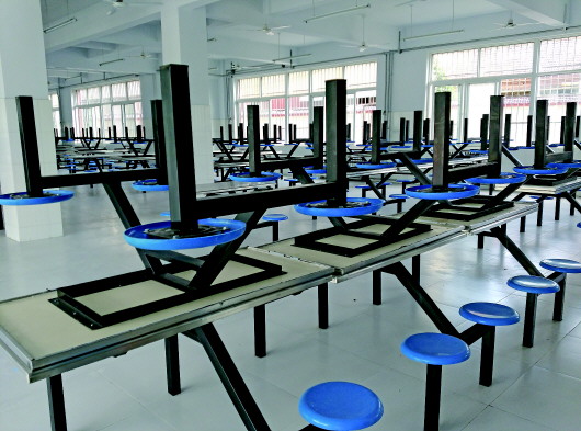 济阳街道小学餐厅内已摆好桌椅。 本报记者 梁越 摄