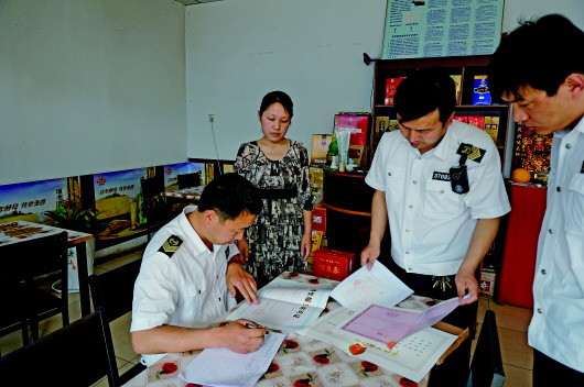 执法人员正在对餐饮单位进行检查。 本报通讯员 王双 摄