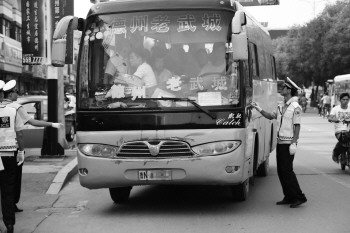 8月25日至9月4日为集中整治营运客车、危险货物运输车第三波次统一行动。德州交警直属一大队民警对途径辖区客运车辆展开集中查处。 本报记者 张磊 通讯员 张亚磊 摄影报道
