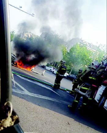 27日上午7点40分左右,热心市民张先生向本报记者爆料称,辽阳西路靠近劲松三路路口附近,一辆黑色现代越野车发生自燃,火苗蹿得很高,引擎盖上不断冒出滚滚浓烟,现场有难闻的焦糊味。“发现起火后,越野车司机拿出一个小型灭火器自救,但因火势较大无法扑灭。”张先生介绍,随后,车主拨打119电话求助。“害怕发生爆炸,当时谁都不敢靠近!”现场另外一名目击者介绍,事发时越野车正沿辽阳西路向东行驶,引擎盖突然冒出黑烟,其他车辆都躲得远远的。由于事发时正值上班早高峰,辽阳西路上车流通行量很大,受自燃车辆的影响,事发路口处很快就出现了压车现象。