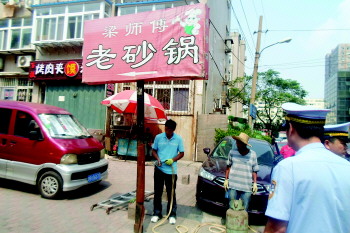27日,市南城管联合湛山街道办事处,依法拆除了秀湛路社区的50余处违法广告牌。据了解,该社区小饭店较多,饭店业主在小区道路上私自安置广告牌,给居民和行人带来安全隐患。