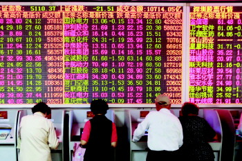 在江西路上一家证券公司,股民在看大盘进行交易。