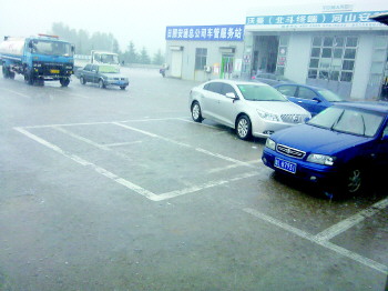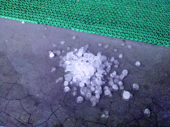 8月27日下午3点多,东港区河山镇下起了冰雹,冰雹有小拇指大小,夹杂着雨滴砸在地上。在河山车管所等待审车的王先生告诉记者,整个雨加雹过程持续了半小时的时间。据悉,五莲县潮河镇也经历了短时的雨加雹过程。(图片为读者王先生提供)