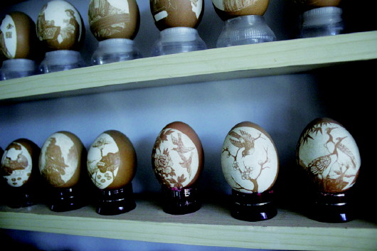 李爱国是一位没有固定职业的农民,脑袋聪明却时运不济,他做过面食、在食堂打过工,这些作为谋生的工作他兢兢业业坚持着,同样,他又是一个有艺术细胞的“农民”,他做过烙画、写得一手好看的小楷字儿,就连现在的蛋雕,他都没有沾染一丝的铜臭气。