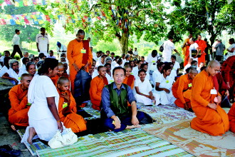 ▲2008年10月,李振华在印度与朝圣者在一起(李振华供图)。