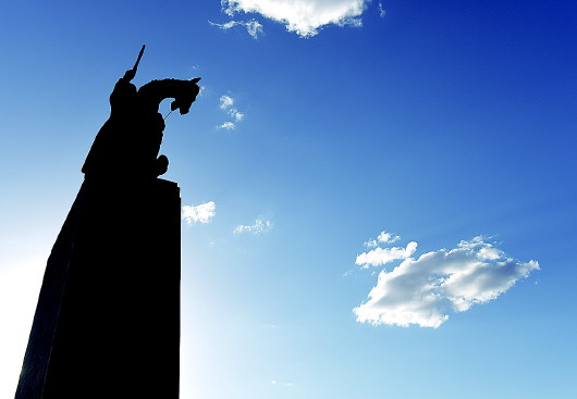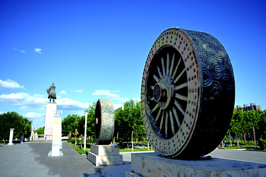 成吉思汗广场上,耸立着巨大的成吉思汗跃马扬鞭的雕像。