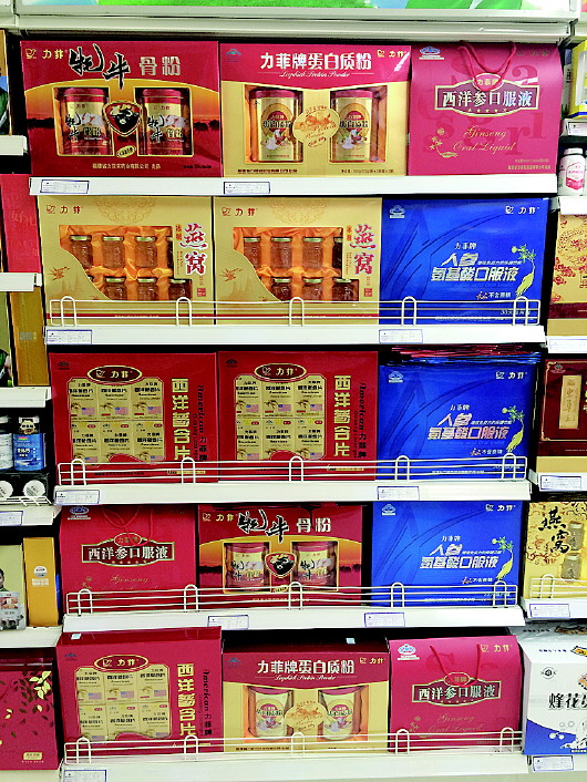 刘先生一想离得很近,就去了山东保健品批发市场。到那里一看大吃一惊,没想到价格不是便宜了一点,而是便宜了一多半。刘先生说,超市卖218元的力菲牌蛋白质粉,那边只卖80元一盒;超市卖178元的力菲牌人参氨基酸口服液,那边只卖60元一盒;超市卖179元的力菲牌牦牛壮骨粉,那边也只卖60元一盒。
