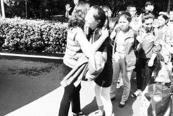 当日上午,除了新招的44名新疆学生之外,已经在济宁生活、学习了一段时间的内高班高一、高二学生们也高兴地走下大巴。和他们刚来时的腼腆不同,这些“老生”们明显更加兴奋,看到自己的班主任吕美华在车外等候,不少学生都高兴地和她拥抱在一起。