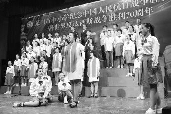 8月31日,莱阳市1500多名师生举行纪念抗战胜利70周年大型合唱演出,同唱一首爱国歌,共上一堂爱国课。此次合唱演出是该市阵容强大、影响力最广的一次爱国教育课,共有来自全市33所学校的师生演唱了44首爱国歌曲。部分中小学优秀美术教师还展示了专门创作的纪念抗战暨世界反法西斯战争胜利70周年书画作品。 通讯员 李梦 李震 本报记者 赵金阳 摄影报道