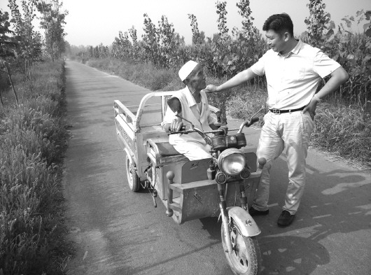 ▲沙元国与村民正在聊天,而他们所在的柏油路便是其出资40万翻修的。