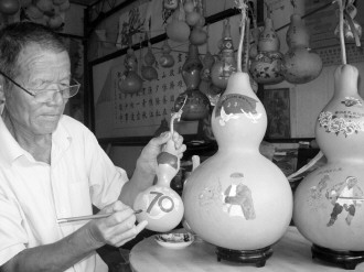 葫芦上烙画纪念抗战胜利