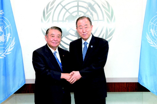 8月31日,日本众院议长大岛理森(左)与潘基文举行会谈。潘基文此前表示,铭记历史非常重要。