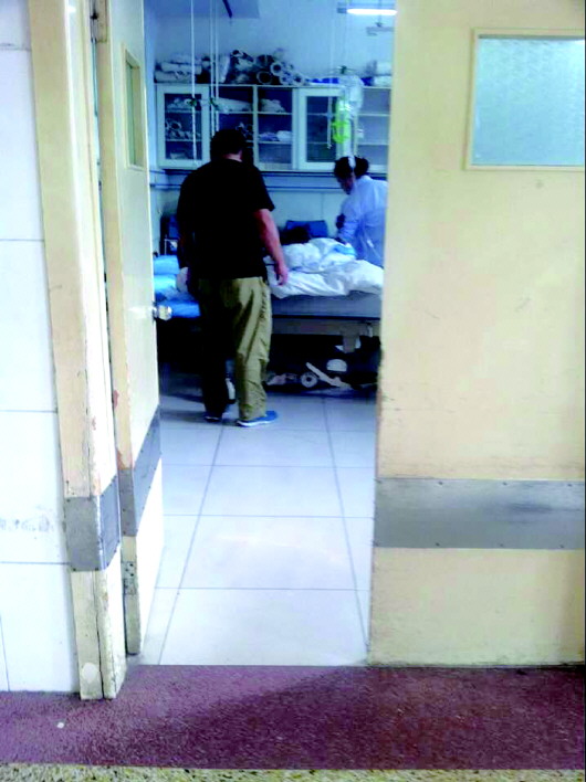 ◤受伤的小尹正在武警医院急诊室接受救治。