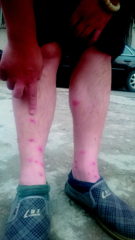 李先生的两条腿上被跳蚤咬得满是红肿。本报记者 刘雅菲 摄