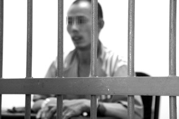曹中立(化名)接受民警提讯。本报记者 苏洪印 摄