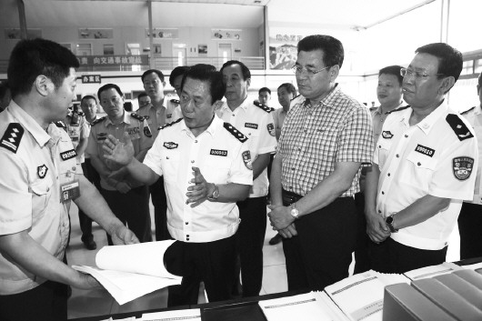 山东省公安厅党委副书记、常务副厅长毕宝文(中)来滨督导检查工作。
