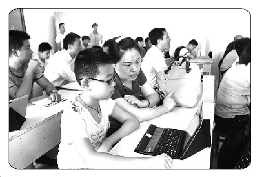 在“互动教室”里,初一新生及家长正在学习体验。