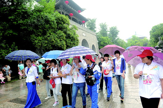 听导游讲述当年繁华的古城。