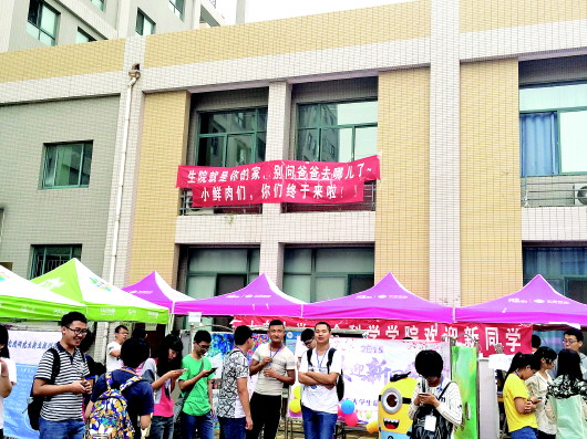 “生院就是你的家,别问爸爸去哪儿了”、“小鲜肉们,你们终于来了!!”据记者了解,这是山大中心校区生命科学学院欢迎2015新同学的标语。