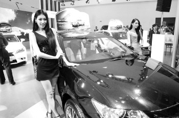 齐鲁车展豪华车展区的靓丽模特(资料图)。本报记者 张晓科 摄