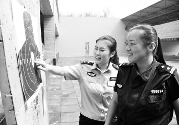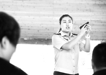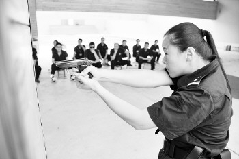 女民警郭程程担任本次培训的教官,她介绍,在市中分局这支强硬的队伍里不乏神枪手。当天参加培训的已经是第四批民警了,全局390名民警不分男女全部参加训练。她说,全局50岁以下的男民警、45岁以下的女民警,分10批必须参加为期三天的训练,训练项目有武器警械、技能培训、枪支技能等多项,每一个项目都有考核,考核不过关还要继续训练补考。