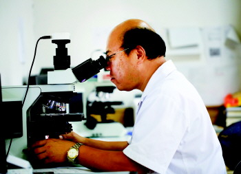 为了做好病理科的工作,20年来,耿振宏一直在不懈努力。20多年前,他主动申请离开检验科来到了病理科,虽然都是从事诊断方面的工作,但病理科却与检验科截然不同。病理科关系着人身体的各个器官,而其病变的多样性导致了病理科的复杂性。“正常情况下,人体的各个器官中的细胞都按照一定规律排列,但在发生病变时这种规律就被打乱了。为了准确判断病情,需要掌握各器官细胞排列的正常顺序,因此当好病理医生是一个长期积累的过程。”耿振宏说。