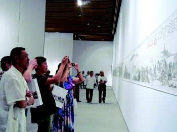 8日,在胶州少海宝龙美术馆开幕的全国中青年画家大沽河艺术写生展暨作品集首发式上,一幅30米长、80厘米宽的《大沽河》长卷吸引了不少市民驻足观看,这是首次用艺术的语言全景式绘制青岛的母亲河——大沽河的长卷。展览将持续至10月31日,免费开放。