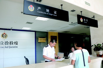 检验检疫部门为企业代表办理自贸协定原产地证书。