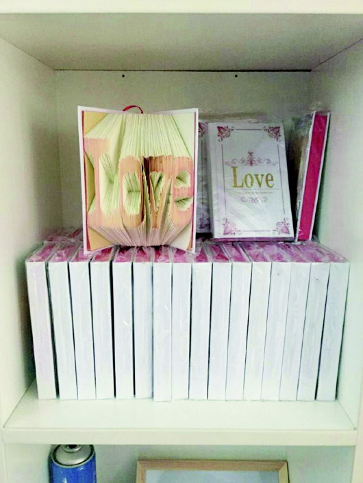 “折纸书看着比较简单,折起来还真挺难的。”杨亚运说。无论是上课、宿舍休息还是走在校园的路上,杨亚运手上都会拿着一本厚厚的书,但这本书不是学习的而是他的研究样本。他每天都一个样子就是抱着书折纸,三个月的时间,他用十几本书反反复复折叠,一本“LOVE”字符的折纸书终于成形了。“因为在折叠的时候每一个的角度都不一样,大一点小一点折出来都会很难看,必须精确到毫米才行。每页纸都拿尺子量,有时候一张纸反复折七八次。”杨亚运说。