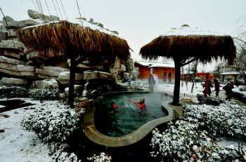 冬季游客在聊城泡温泉。