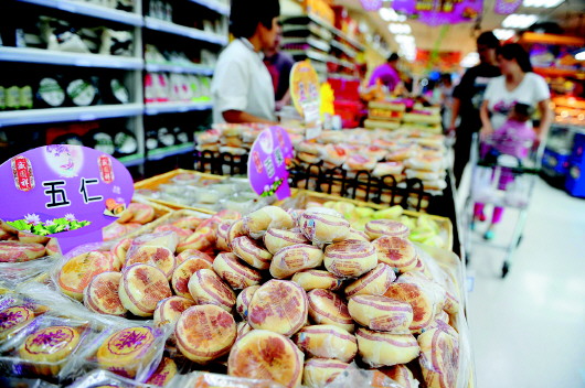 9日,在济南泉城广场地下超市内,市民们正在选购月饼。记者看到,这些月饼大都来自济南本土品牌,外面包装很简单复古,但月饼馅儿却很丰富,大约有30多种口味。据超市工作人员介绍,这些“简装”的月饼虽然没有花哨的包装,但是很受市民的青睐。