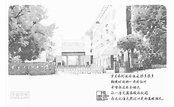 这是一幅通往梦想的画面,也是一个记忆曾经那时的处所,老校门、小伙伴、作业本,一段想回却永远回不去的旧时光。“9路公交车的后排座,还依稀留有《范特西》的青春旋律,那时候心仪的同班女生,总是梳着一个高高的马尾辫。励志的少年,就这样独自甜蜜地,追逐梦想。”在手绘校园之育才中学的明信片上,育才中学校门口的手绘图案,配上这一段青春味道的文字,让人不由回忆起最美好的校园时光。