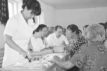 9日上午,在莱阳市万第镇前岚子前村村委办公室,来自烟台市莱阳中心医院的主任医师携带血糖仪等专业设备为村民们进行爱心义诊,烟台康源医药连锁公司为村民们带去一万余元的感冒药、膏药等常用药品,现场为村民们免费发放。据统计,当天上午,共有360余人接受了爱心义诊,建立健康档案130份,免费发放各类药品1300余件,总价值1.1万余元。 通讯员 宋晓玲 李庆盛 本报记者 赵金阳 摄影报道