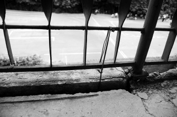 如今,这条走廊已经是危机四伏,靠近外侧的地方已经和走廊逐渐脱离,可以很容易的从中间的缝隙中看到二楼和一楼,而脱落的水泥块常常会落到一楼的院子里。