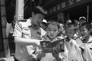 秋季开学以来,安丘市公安局交通警察大队组织民警深入全市中小学校、幼儿园为小学生开展交通安全教育活动,通过发放交通安全宣传画册,与学生家长交流,达到群防群治,安全出行的目的,提高学生的交通安全意识,预防和减少涉及学生的道路交通事故的发生,确保孩子们安全出行。图为9日,民警为学生开展交通安全教育。