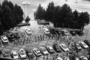 德州天衢路一处停车场上,每到傍晚时,跳广场舞的市民在车缝中起舞。 本报记者 马志勇 摄