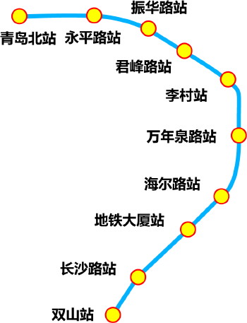 青岛地铁3号线全长约25公里,包括22个车站,1个控制中心、1个车辆段。按照计划,地铁3号线先开通北段,自北向南包括青岛北站、永平路站、振华路站、君峰路站、李村站、万年泉路站、海尔路站、地铁大厦站、长沙路站、双山站等10个车站,总里程约12公里。南段包括清江路站、错埠岭站、敦化路站、宁夏路站、江西路站、五四广场站、延安三路站、太平角公园站、中山公园站、汇泉广场站、人民会堂站、青岛站,计划于2016年底接入,实现全线开通试运营。
