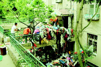 83岁的徐老汉一直嗜好捡拾废品,他居住的市北区拜泉路22号内堆满了他捡来的废品。这些废品不光占据了楼道内的空间,还散发着难闻的气味,影响周边居民的正常生活。9日,在征得徐老汉的同意后,海伦路街道组织城管科以及保洁公司的工作人员对楼道进行清理,共清理废品10余车。